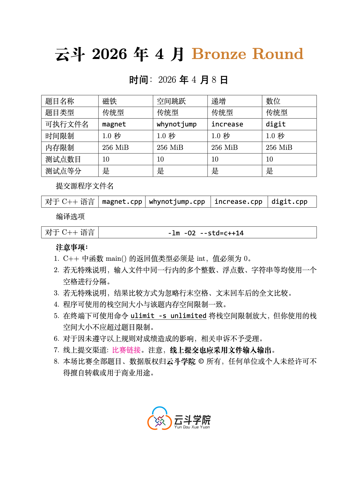 参考比赛 pdf 文件。即本公告下方的云斗四月BronzeRound.pdf